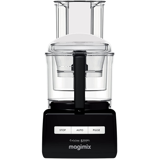 Magimix 18584 5200 Black XL with Extra Large Feed Tube, The machine has a powerful 1100w commercial quality motor with 30 year guarantee (for normal domestic use) will deal with a capacities up to 1.5kg of pastry, 1.2kg dough, blend 1.8 litre soups, chop 1.4kg Meat, whisking 8 egg whites plus many other jobs. H425 x L210 x D260 mm, The 5200XL, extra large feed tube, this allows large amounts, 1.4kg carrots or cheese, of whole vegetable preparation to be achieved quickly. The 5200XL 18584 is delivered with :-